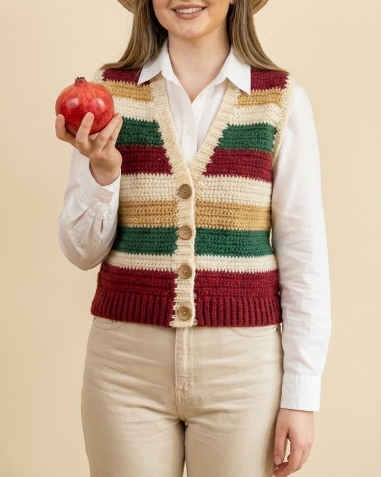 بلوز بافت دخترانه راه راه یقه شکاری نخ ترک
