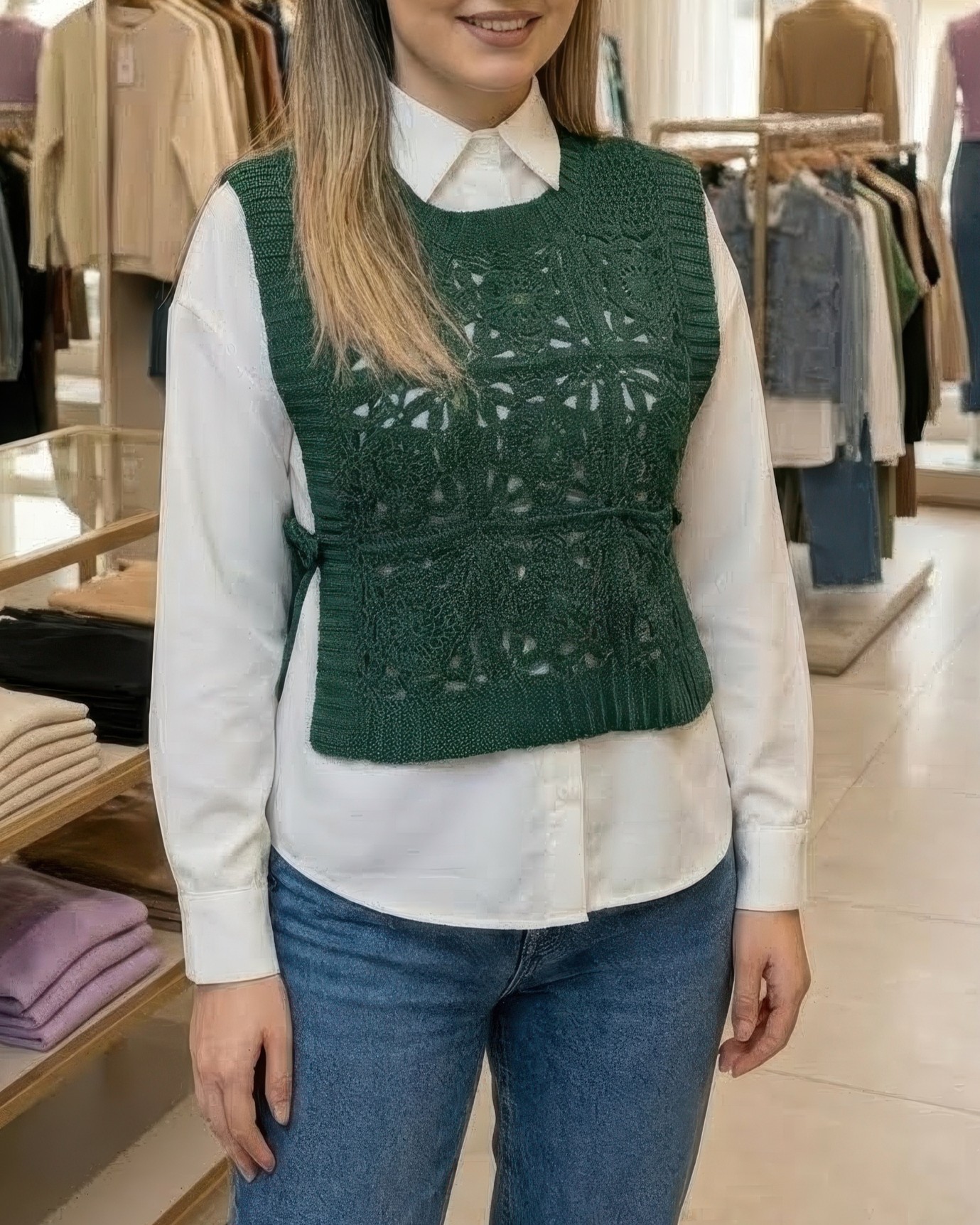 بلوز دخترانه کراپ پایین گره خامه دوزی و قلاب بافی