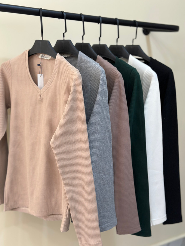 بلوز بیسیک زنانه یقه هفت آستین بلند
